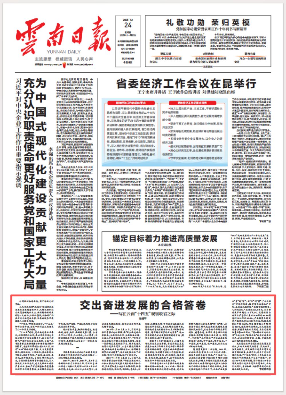 “十四五”即將圓滿收官,“十五五”即將全面開(kāi)啟,奮進(jìn)中的彩云之南迎來(lái)了又一個(gè)歷史性時(shí)刻。